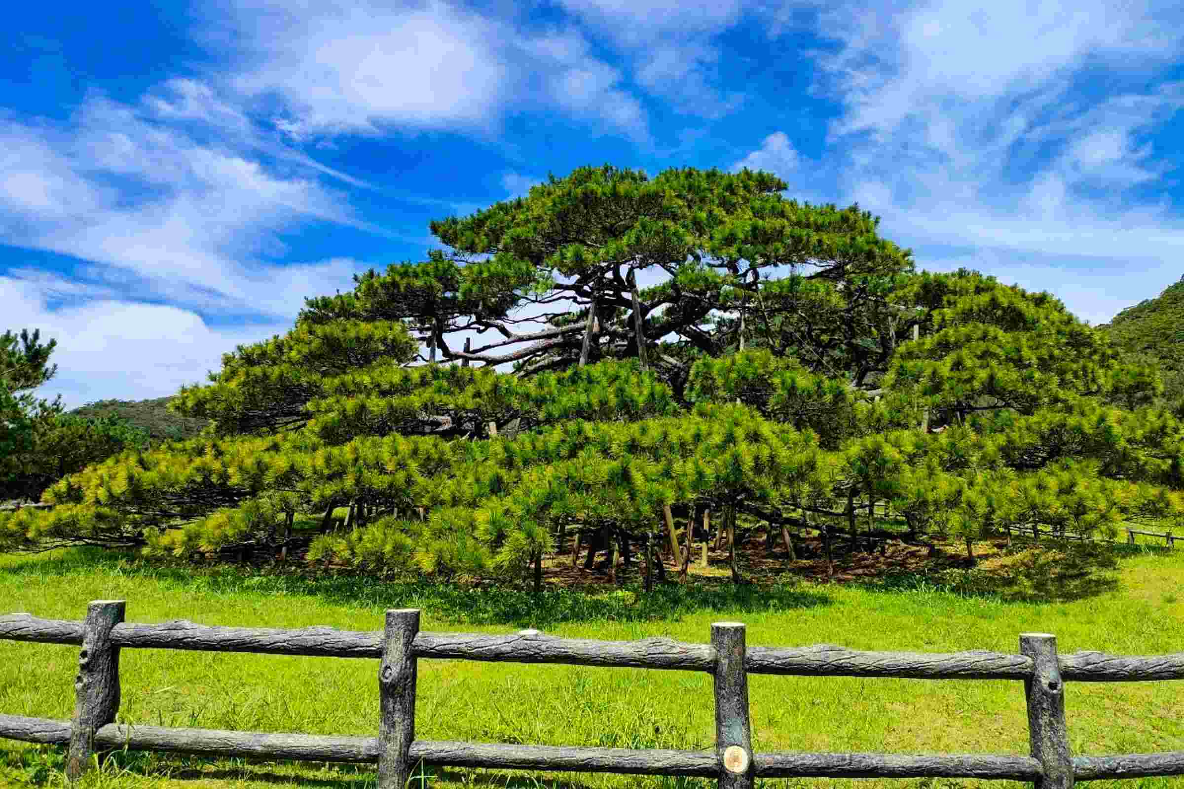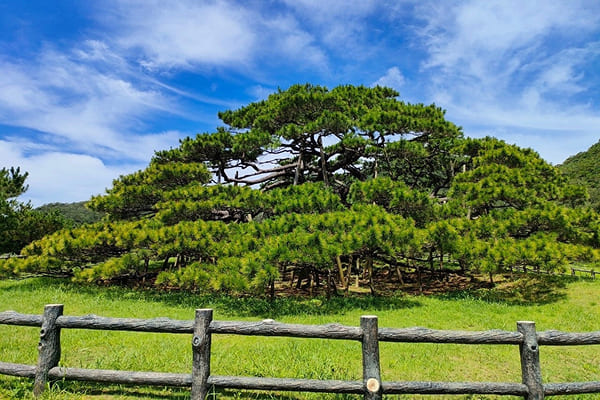 島の最北端に突き出た緑が茂る小山、近づいて見るとほとんどが同じ種類の常緑樹で覆わ...