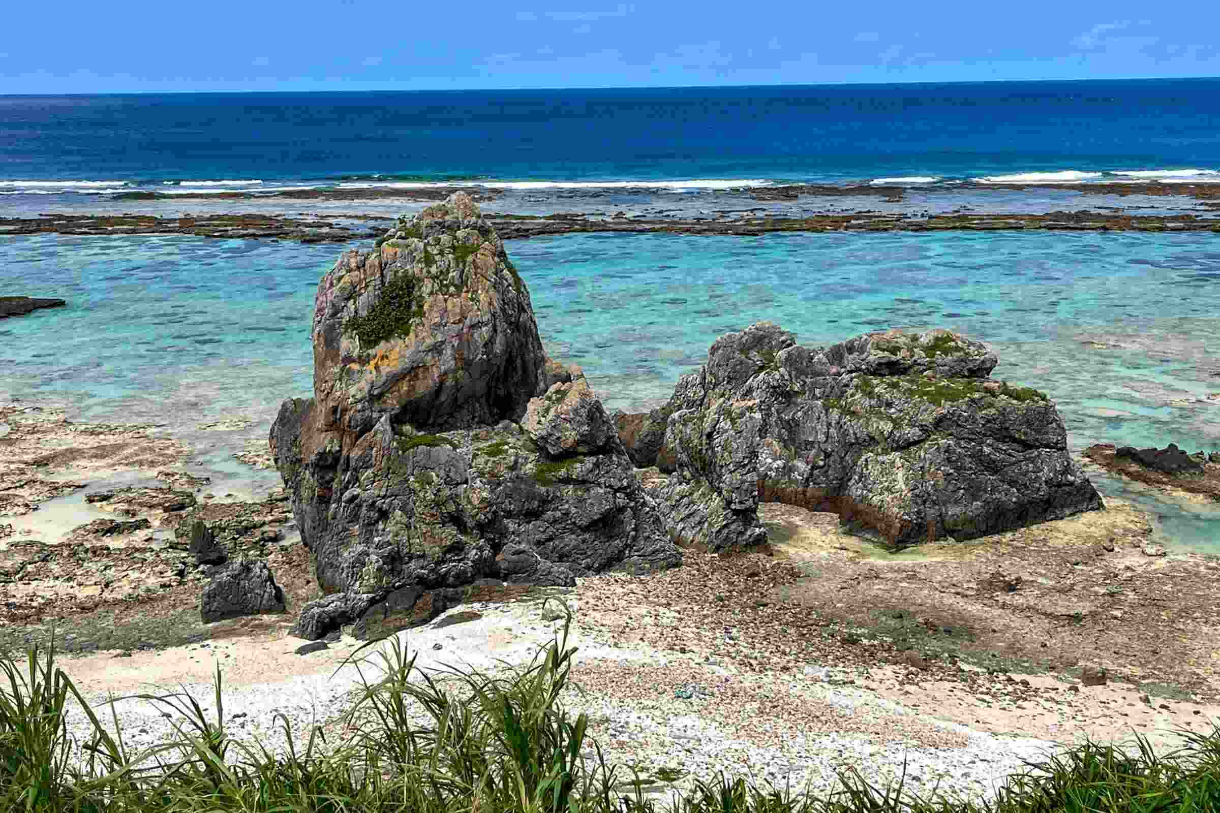 西海岸のヤヘー岩とクバ山の中間付近にビーチから突き出た高さ10mほどのひょうたん...
