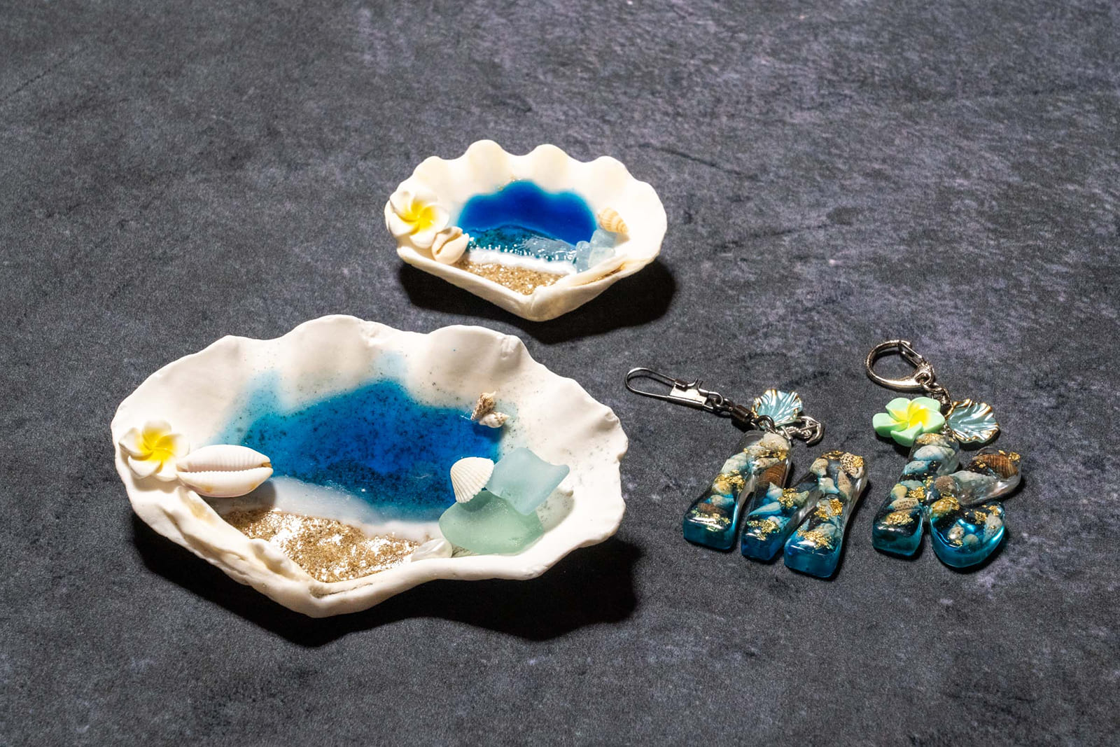 このアクティビティについて 海辺で拾った貝殻やサンゴくずを材料に、レジンを使った...