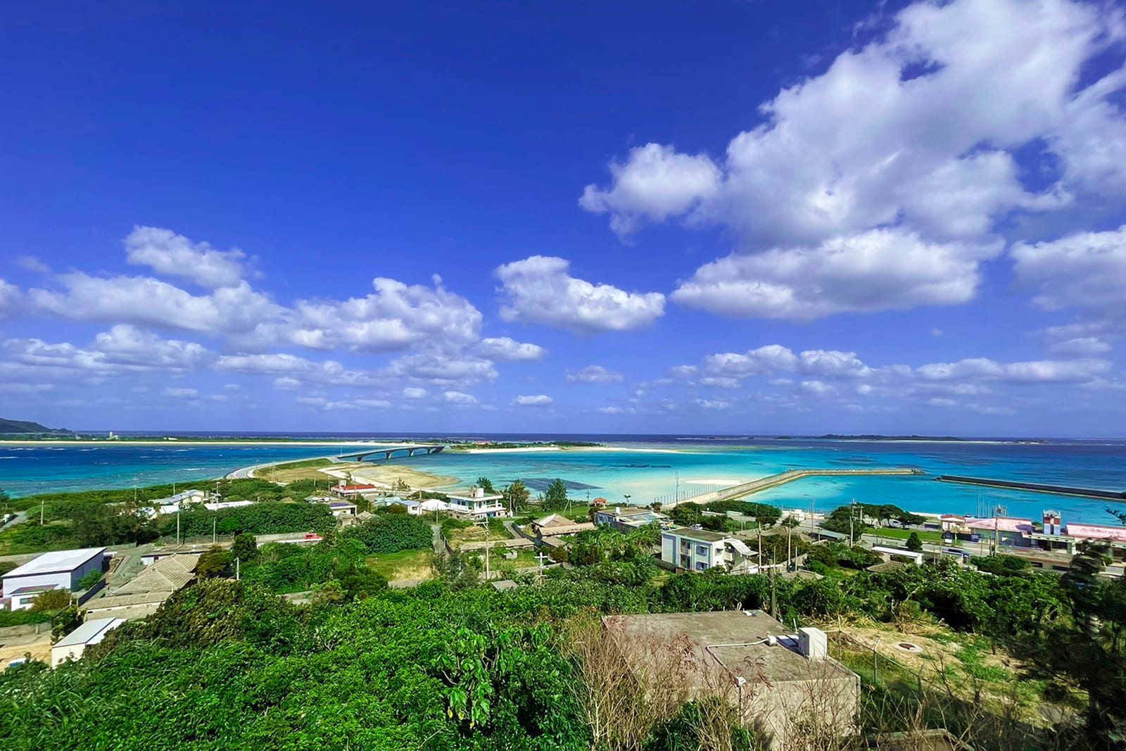 | 散策コース | フェリーターミナル→我喜屋集落→ダム道→島尻集落→27度線モニュメント→野甫大橋→野甫集落→グンサナーの森→片隈神社→フェリーターミナル |