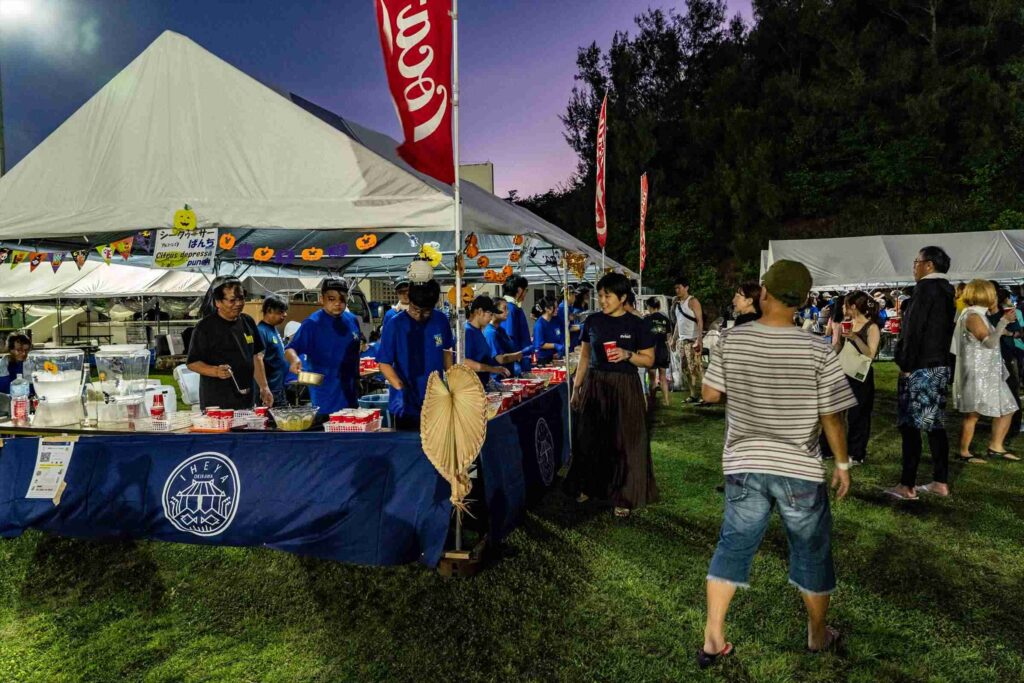 会場内に村内の飲食店や有志の出店が並び、ステージではミュージシャンのライブや青年団のエイサー、