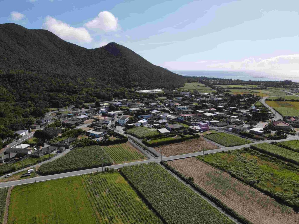 真ん中の建物はアシャギ、かつては毎月のようにあったと言われる祭事でノロが神を招き入れ祈りを捧げた館、