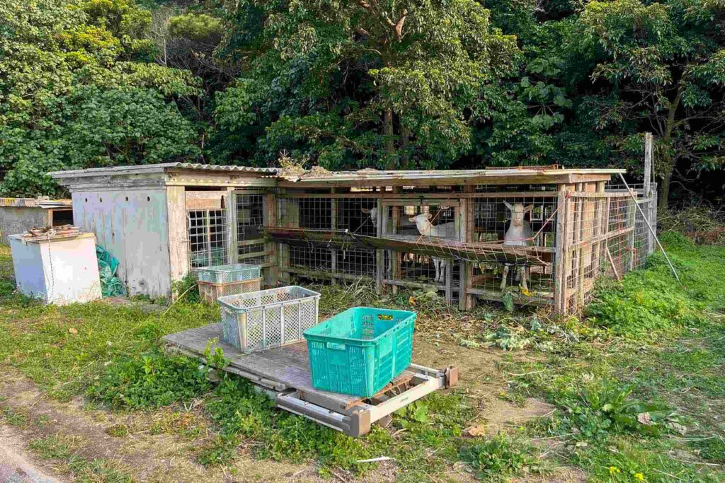 神アシアゲから片隈神社に向かう途中、かわいらしいヤギと出会えます。