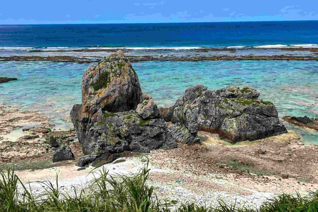 西海岸のヤヘー岩とクバ山の中間付近にビーチから突き出た高さ10mほどのひょうたん型の岩がある。