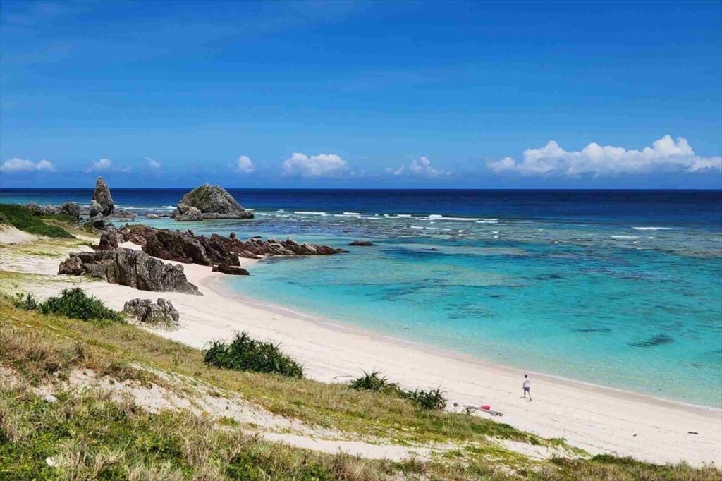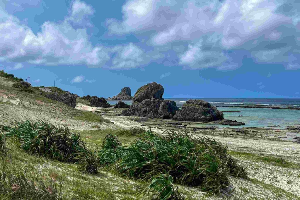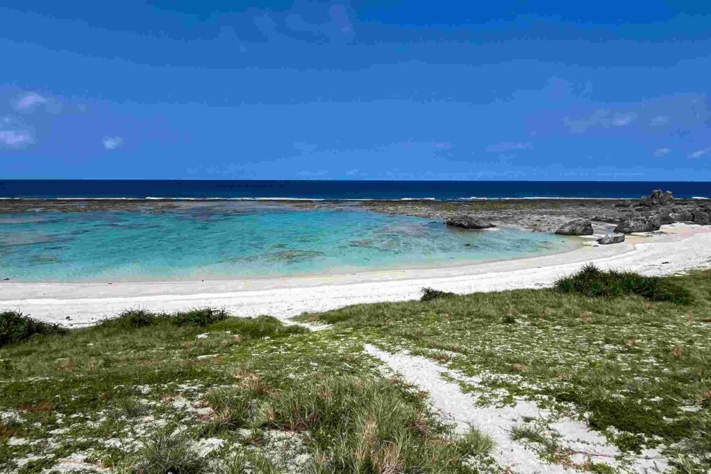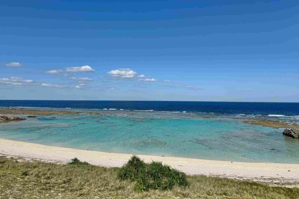 開けた高台に行きつき、そこが伊平屋島の最北端、田名岬の先端となります。