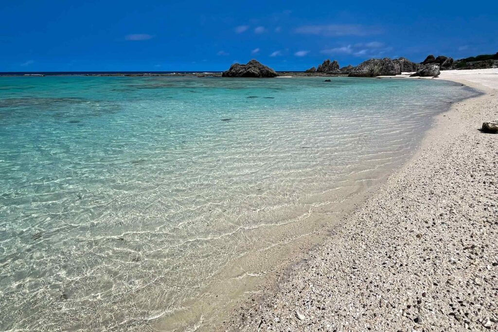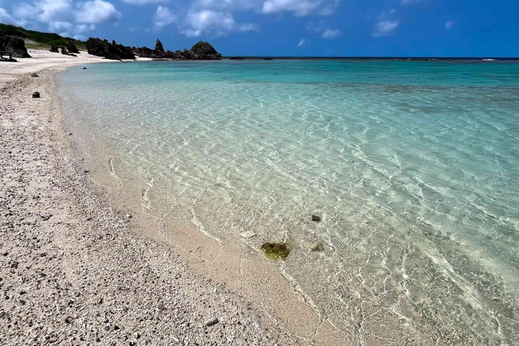 潮下浜(すーがはま)と呼ばれるビーチ、潮が引くとリーフで完全に外海と遮断されうねりが入ってこないため、