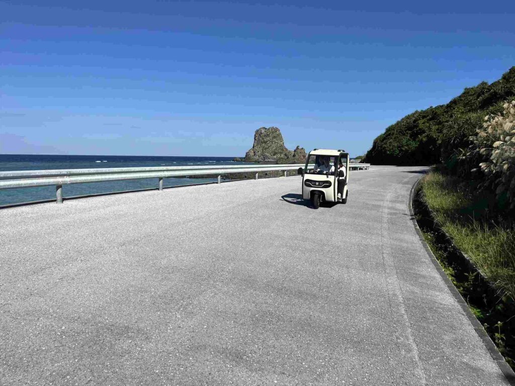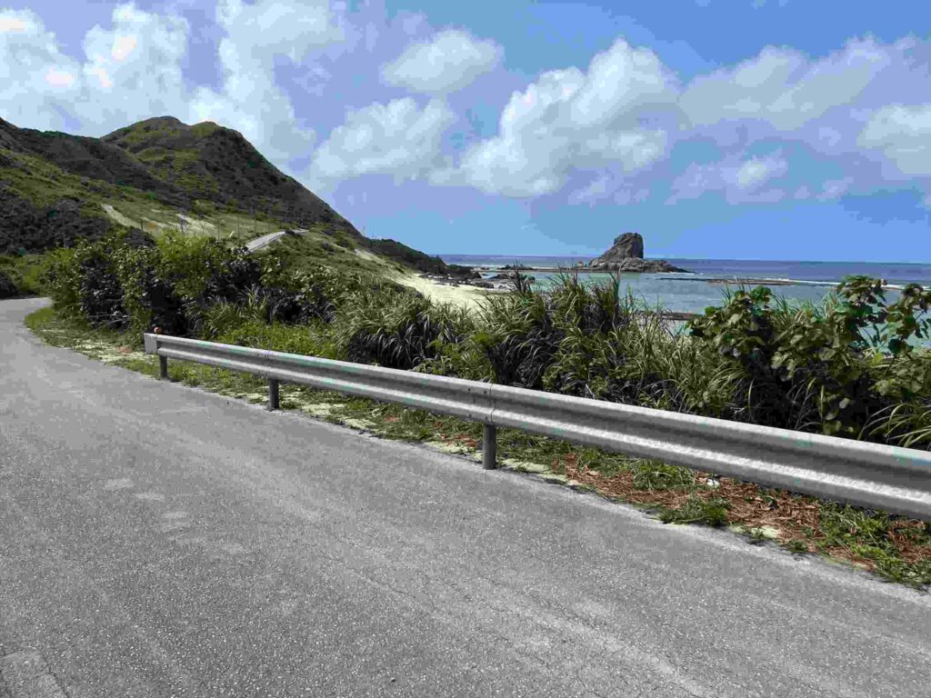 南からだと田名漁港を過ぎたあたり、北からだクバ山の入り口を過ぎ西海岸に入った途端目に入る、