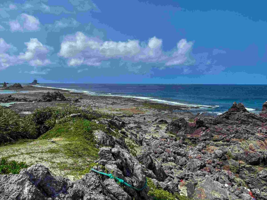 岩の沖側は絶好の磯釣りポイントですが、夢中になり過ぎると潮が満ちて帰れなくなるのでご注意。