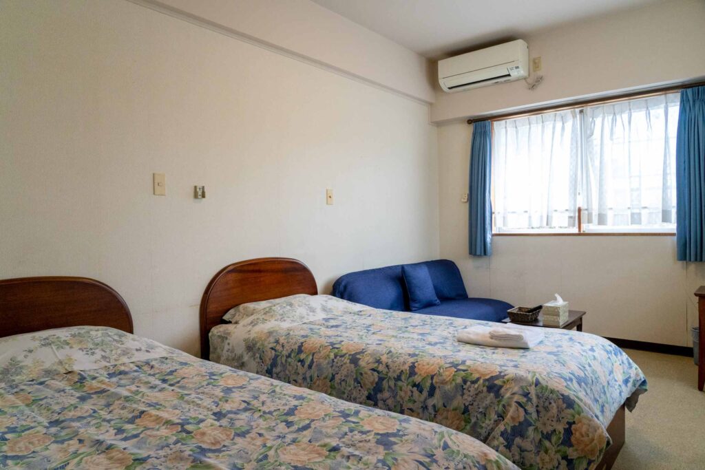 客室は洋室(1~2名利用 16㎡ツインベッド)と和室(1~2名利用 6畳)があり、