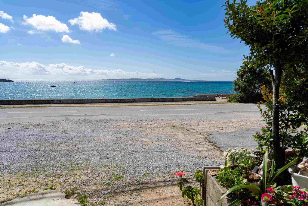 みらい荘の玄関を開け一歩踏み出すとそこには遮るものが一切ないエメラルドグリーンの透き通った海が広がります。