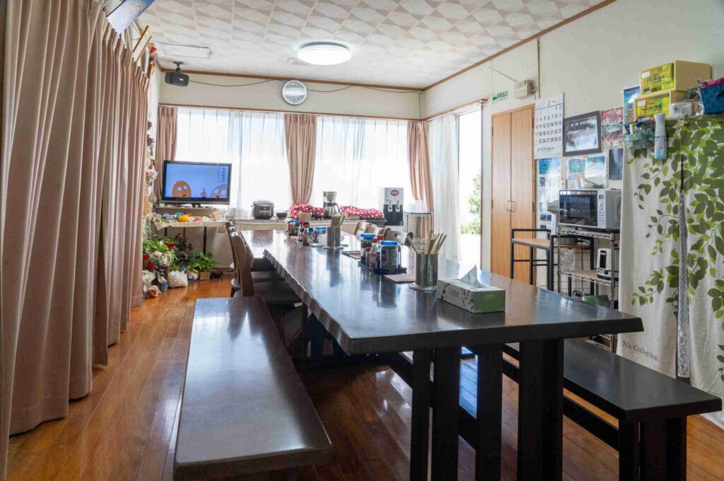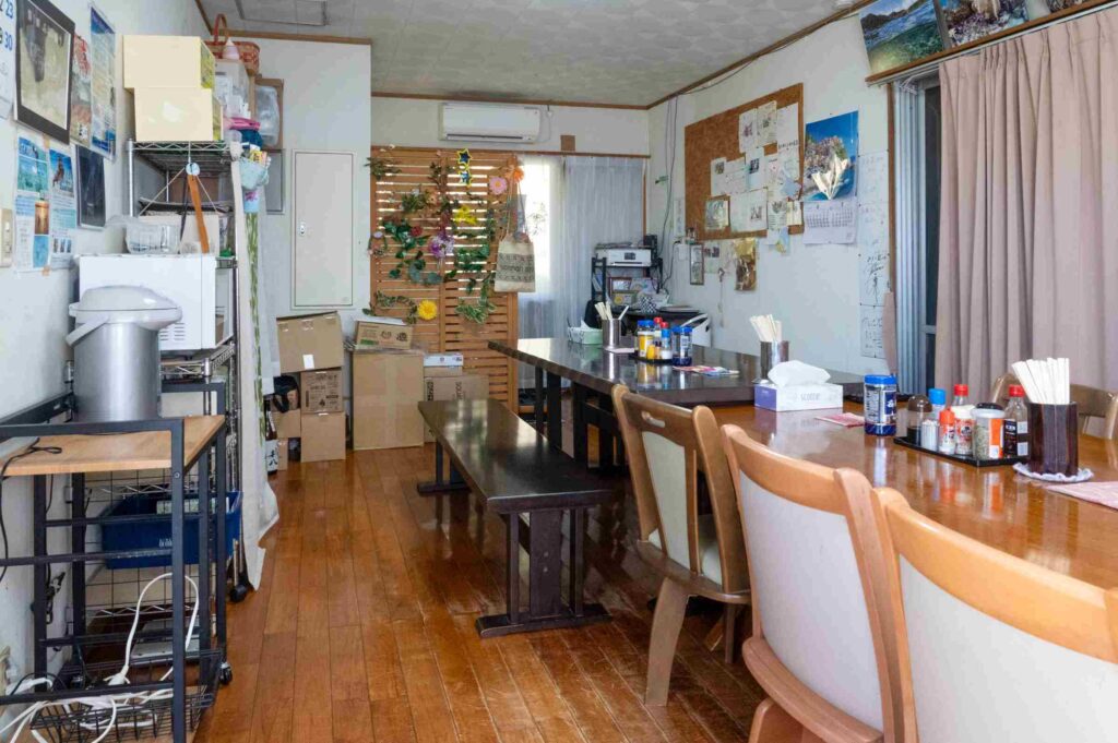 女将の名嘉広子さんが切り盛りしています。夫の律夫さんは伊平屋村長。夕食時には歓談に加わわることも。